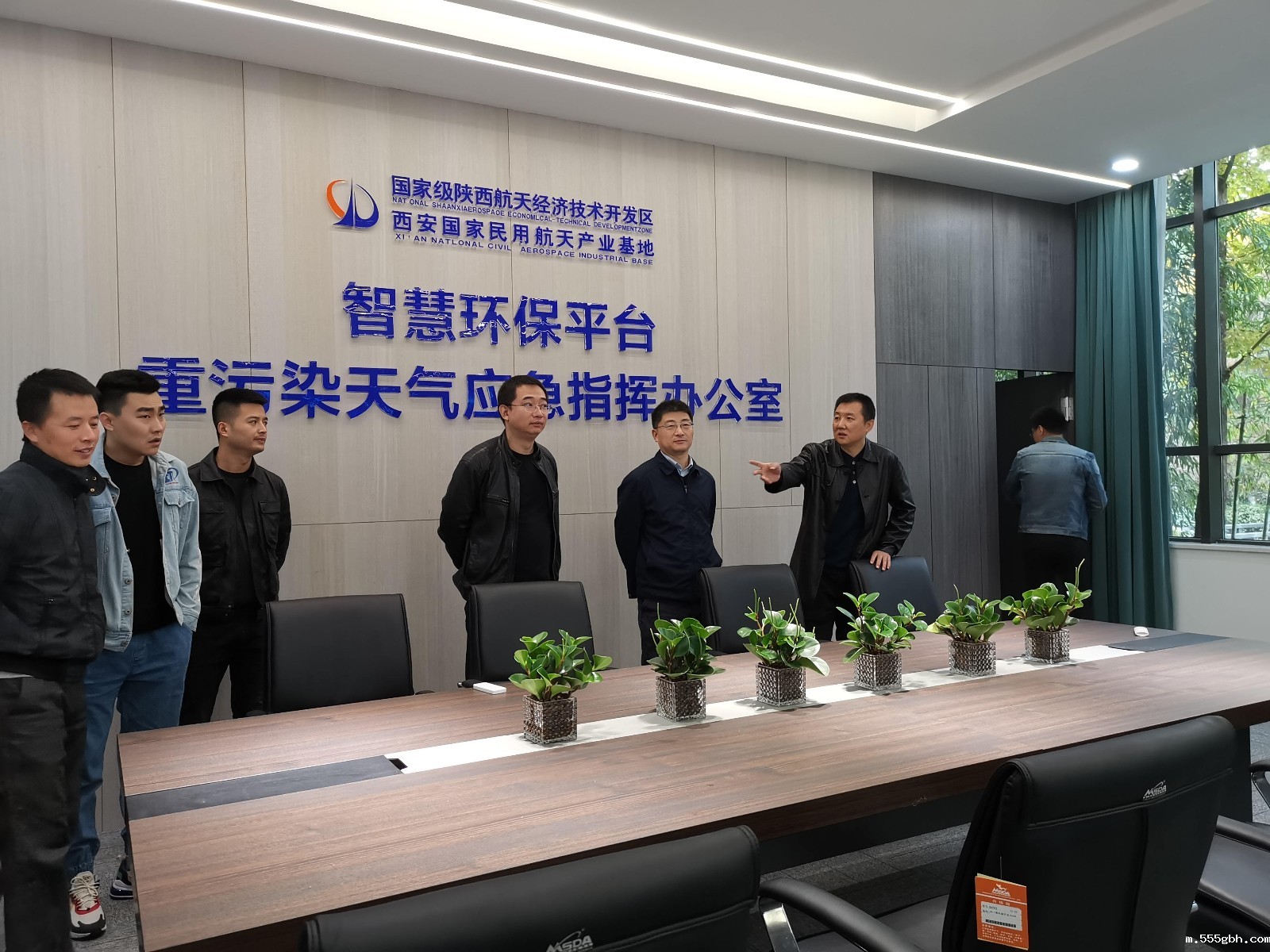 11月8日,西安国家民用航天产业基地管委会副主任贺延光带队到中圣公司承建的航天基地“智慧环保平台、重污染天气应急指挥办公室”检查平台建设及运行工作。
