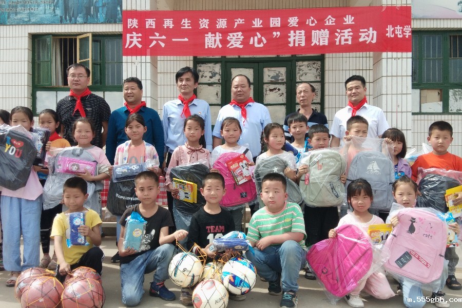 活动当天,新天地公司相关负责人同陕西再生资源产业园区各爱心企业负责人一同走进礼泉县烟霞镇北屯学校,为该校贫困留守儿童送去了足球、篮球、书包、文具等爱心物品。新天地公司相关负责人表示:“希望孩子们能克服困难,勤奋学习,树立远大理想,养成优良品德,培养过硬本领,历炼健康身心,在校做一名好学生,在家做一个好孩子,在社会上做一位文明的小公民,不辜负家长的重托,不辜负党和人民的期望,同时提前祝小朋友们节日快乐,茁壮成长。”